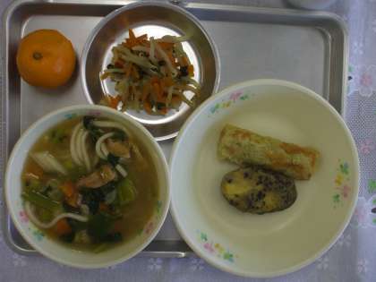 11月15日(土) 今日の給食 公開日 2014/11/15 更新日 2014/11/15 給食室から こぎつねごはん さつま芋とちくわの天ぷら 煮びたし くだもの 牛乳 ☆☆☆ 野菜の産地 ☆☆☆ にんじん 埼玉 小松菜 神奈川 さつま芋 千葉 たまご 岩手 ほうれん草 埼玉 もやし 栃木 みかん 和歌山 給食