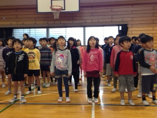 12月11日(木)。今朝は音楽集会が開かれ全校で「君をのせて」を歌いました。