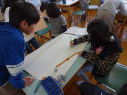 地域安全マップ作り 公開日 2014/12/15 更新日 2014/12/15 4年生 総合的な学習の時間に、地域安全マップを作りました。家の方面ごとにグループを組み、通学路で注意すべき場所を地図の中に書き込んでいきました。子どもたちが積極的に地域の安全について考える機会になりました。 4年 授業