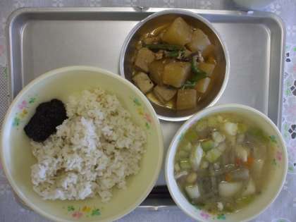12月18日(木) 今日の給食 公開日 2015/01/20 更新日 2015/01/20 給食室から ごまごはん ぶり大根 味噌けんちんご汁 のりの佃煮 牛乳 ☆☆☆ 野菜の産地 ☆☆☆ 生姜 熊本 大根 三浦 にんじん 千葉 ごぼう 青森 里芋 埼玉 長ねぎ 八王子 だいこん 八王子 給食