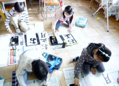 お正月をかきました 公開日 2014/12/25 更新日 2014/12/25 3年生 冬休みももうすぐになりました。 3年生では、「お正月」を習字で書きました。 いつもとは違い、長い半紙に最初は苦戦していましたが、練習を繰り返すと、どんどん上手になっていきました。 1月にある校内書写展が楽しみです。