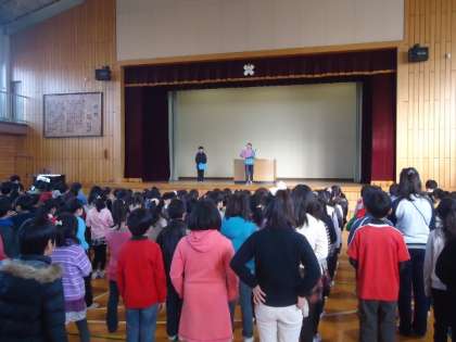 冬休みが終わり今日から3学期です。進級・進学に向け、新たな気持ちでスタートしました。始業式では、4年生代表児童2名が、3学期の目標を堂々と発表しました。
