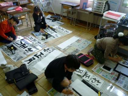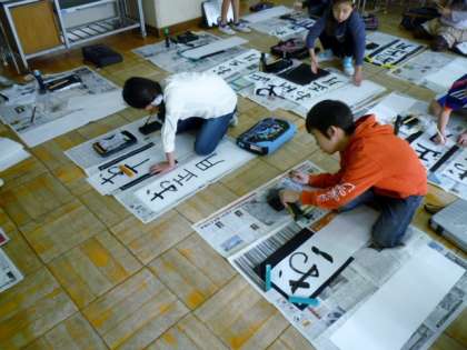 書初め 公開日 2015/01/15 更新日 2015/01/15 3年生 3学期が始まりました。本年もよろしくお願いします。 3年生は書初めをしました。2学期や冬休みに練習をした「お正月」を丁寧に書いていました。子ども達は一文字一文字真剣に取り組んでいました。クラスで1人の作品がおおるり展に出展され、全員の作品が、校内書写展に出展されます。