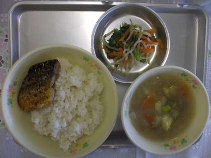 1月13日(火) 今日の給食 公開日 2015/01/20 更新日 2015/01/20 給食室から ごはん 鯖の風味焼き 根菜汁 三色ナムル 牛乳 ☆☆☆ 野菜の産地 ☆☆☆ 生姜 高知 ごぼう 青森 にんじん 千葉 小松菜 東京 もやし 栃木 にんにく 青森 給食