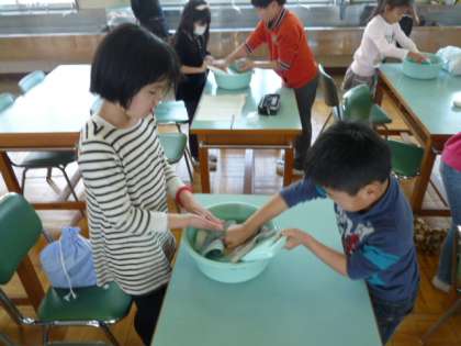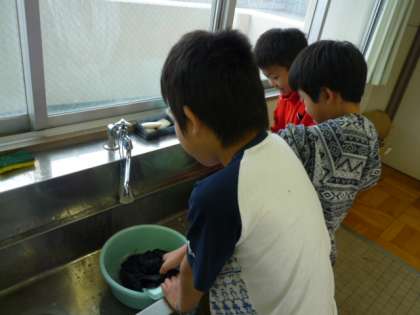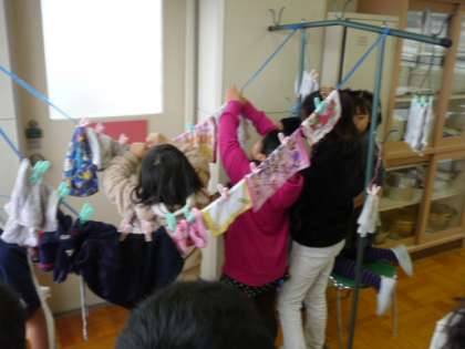 洗濯板を体験しました 公開日 2015/01/23 更新日 2015/01/23 3年生 社会科では、「かわってきた人々のくらし」について授業をしています。 昔のくらしが分かるように、洗濯板を体験しました。 大半の子どもが初めて洗濯板を手に取り、洗濯をしていました。 「水が冷たい」「汚れが落ちる!」と洗濯板に感想をもらしていました。