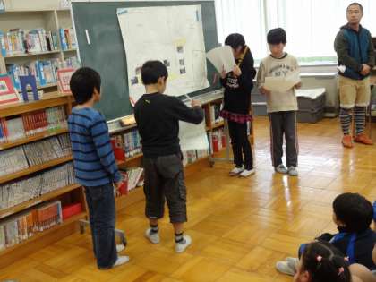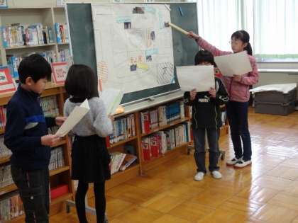 地域安全マップ 公開日 2015/01/29 更新日 2015/01/29 4年生 総合的な学習の時間に作った「地域安全マップ」を使って、4年生が3年生に発表会を行いました。4年生は、自分たちの通学路の安全について、全員が発表することができました。3年生は、静かに聞くことができました。 3年 4年