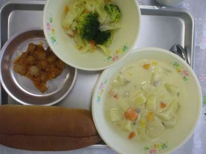 2月5日(木) 今日の給食 公開日 2015/02/05 更新日 2015/02/05 給食室から サルサドック コーンチャウダー フレンチサラダ 飲むヨーグルト ☆☆☆ 野菜の産地 ☆☆☆ じゃが芋 八王子 玉ねぎ 北海道 ブロッコリー 愛知 キャベツ 千葉 給食