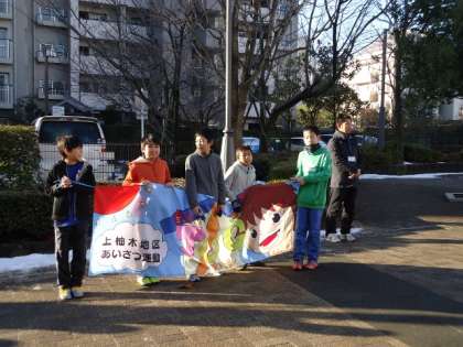上柚木地区合同あいさつ運動 公開日 2015/02/09 更新日 2015/02/09 5年生 朝7時50分から、上柚木地区合同あいさつ運動がありました。朝露や路上も凍っている寒い時間でしたが、朝日に照らされて子供たちの元気な挨拶が響き渡りました。道行く人に自分から進んで挨拶をして返事が返ってくると、とても清々しい表情をしていました。日頃からも意識して、身近な人に進んで挨拶ができるとよいと思います。 5年