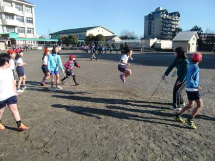 各クラスとも前回の記録を超えることを目指して力を合わせて跳びました。今回から1・2年生も回した縄を跳びました。担任の先生と一緒に縄を回す5・6年の運動委員さんも頼もしい活躍をしてくれました。