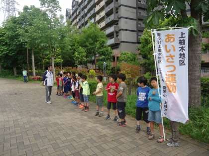 上柚木地区朝の合同あいさつ運動 公開日 2015/06/05 更新日 2015/06/05 今日の出来事 スローガンは、「J(自分から)、O(大きな声で)、G(元気よく)」です。今朝の担当は4年生でした。元気よく「おはようございます。」とあいさつをしていました。 校長より