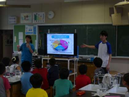 水道キャラバン 公開日 2015/06/19 更新日 2015/06/19 4年生 水道キャラバンが来てくれました。 水道キャラバンでは1校時に、浄水処理上の仕組みや、玉川上水について勉強しました。 2校時には、浄水処理上の沈殿・ろ過について実験をしました。 子供たちは、水道キャラバン隊のお兄さん・お姉さんと楽しく勉強し、実験では汚れが沈殿する様子に、とても驚いていました。