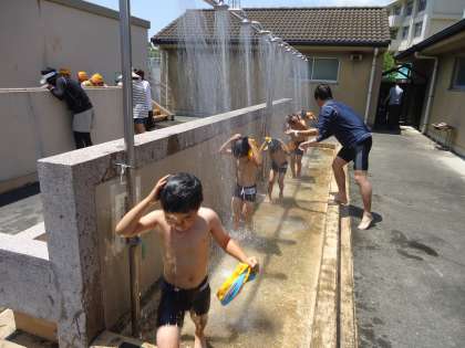 6月24日は1年生のプール開きでした。少し寒かったですが、小学校に入って初めてのプールだったので子供たちは楽しんで水遊びをしていました。