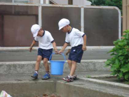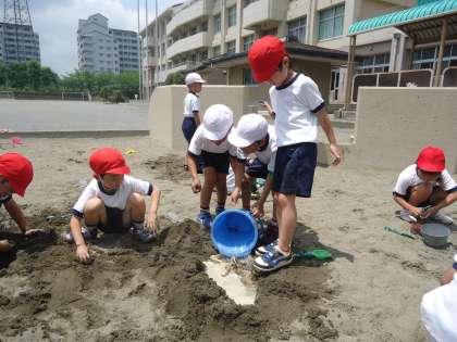 1年生は砂場で図工の単元である「造形遊び」を行いました。