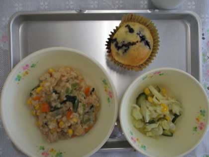 9月1日(火) 今日の給食 公開日 2015/09/08 更新日 2015/09/08 給食室から 野菜リゾット ブルーベリーマフィン グリーンサラダ 牛乳 ☆☆☆ 野菜の産地 ☆☆☆ たまねぎ 北海道 にんじん 北海道 エリンギ 新潟 ブルーベリー 八王子 キャベツ 群馬 こまつな 茨城 きゅうり 岩手 給食