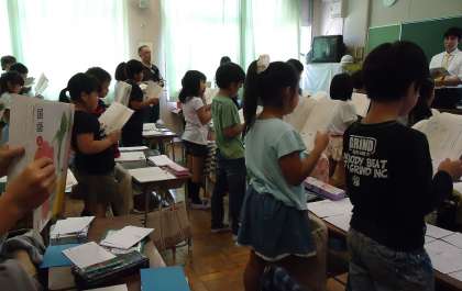 校内研究授業(3年) 公開日 2015/10/29 更新日 2015/10/29 今日の出来事 10月28日(水)3年1組にて校内研究授業を行いました。「せつめい上手になろう」という国語の授業を行いました。学校全体で取り組んでいる「情報カード」を整理しながら、段落同士の関係や問いと答えをつなぎ分かりやすく説明することを学習しました。 その後、講師に帝京大学の鎌田先生をお迎えして、研究協議会を行いました。 校長より 1年 2年 3年 4年 5年 6年 授業 研究・研修 生活 行事 給食