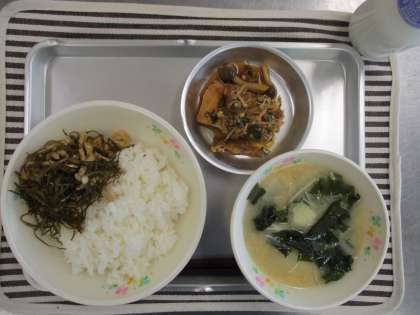 平成28年5月26日の献立 公開日 2016/05/26 更新日 2016/05/26 給食室から 今日の献立 ※ ごはん ※ 厚揚げのきのこソース ※ クーブイリチー ※ 具だくさんみそ汁 ※ 牛乳 主な食材の産地 米・・・・・・・・福井 にんにく・・・・・青森 玉ねぎ・・・・・・淡路島 えのき・・・・・・長野 しめじ・・・・・・長野 万能ねぎ・・・・・高知 生姜・・・・・・・熊本 じゃが芋・・・・・長崎 大根・・・・・・・八王子 給食