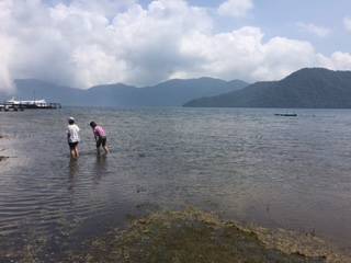 (1枚め)中禅寺湖畔で昼食を食べました。