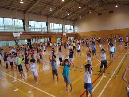 ラジオ体操 公開日 2017/07/28 更新日 2017/07/28 今日の出来事 夏休みに入り、ラジオ体操は今日が5日めでした。5日間の平均は児童数のみで112名、保護者の方、ご弟妹も加えると毎日130名の方が出席されたのではないかと思います。夏休み中にはあと2日、8/24・25にも行われますので、2学期の直前、ぜひ参加してください。 校長より 1年 2年 3年 4年 5年 6年 授業 研究・研修 生活 行事 給食