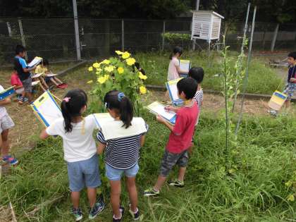 4年生は夏の間に生長したヘチマの観察をしました。