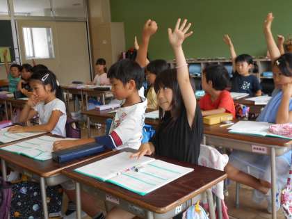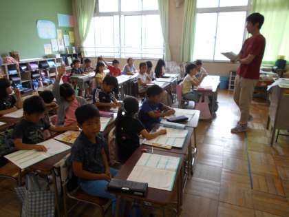 本校では、道徳授業で担任が同じ学年の別のクラスでも授業を行う交換授業を実施しています。この日は、2年生が交換授業をしていました。担任の先生とは、違う切り口で子供たちの考えを引き出していました。