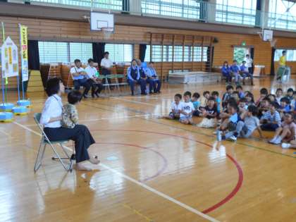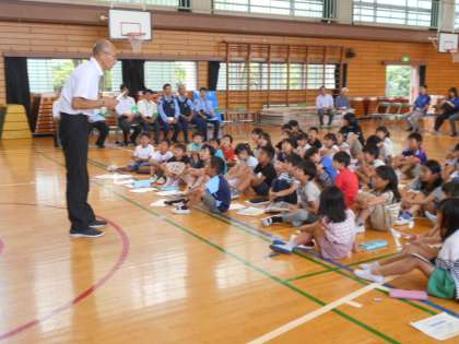 体育館で南大沢警察の方から講話をいただき、あらためて「いか・の・お・す・し」