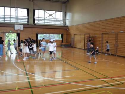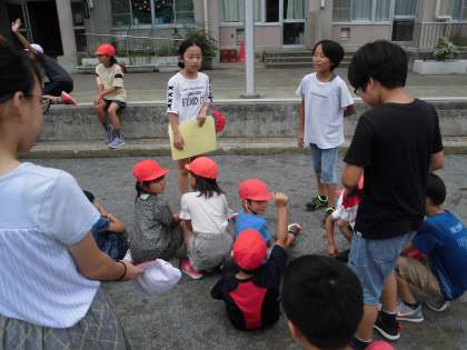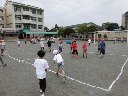 6月28日に第2回みんな友だち班活動を行いました。台風の予報でしたが雨も降らず、校庭や体育館で汗をかいて遊びました。班ごとに鬼ごっこ・ドッチボールなど上の学年が様々な遊びを考え、活動していました。