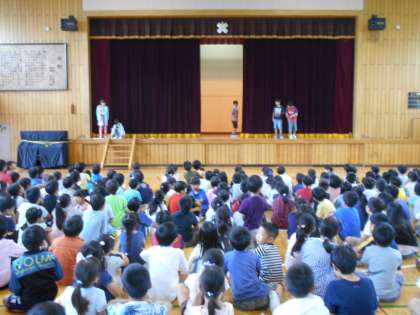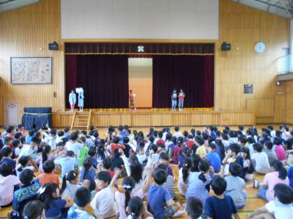 1学期最後の集会はゲーム集会でした。暗幕のすき間に、集会委員が投げたり通過させたりするものは何かを当てるゲームでした。いつもは学校で使う様々な道具が多いのですが、今回はちょっと意外なものも通過しました。どんなものだったかは、ぜひお子さんに聞いてみてください。