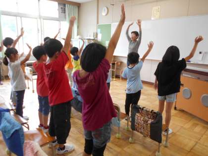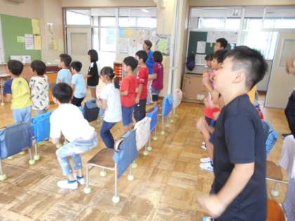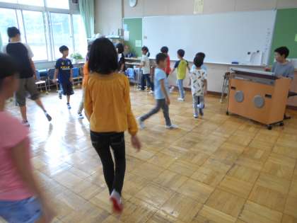 1学期の音楽の授業はこの日で終わりです。今回も体いっぱい使って、リズム遊びや歌を歌っていました。