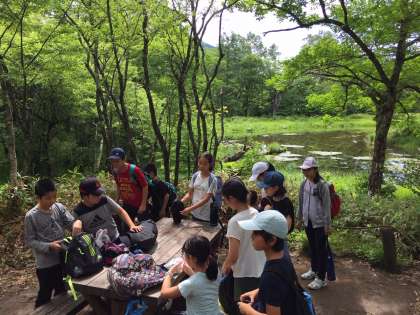 暑過ぎずとても気持ちがいい木道歩きです。左手に男体山が姿を見せ始めています。