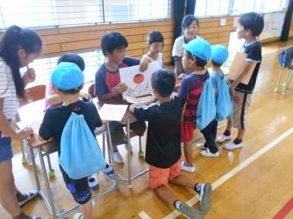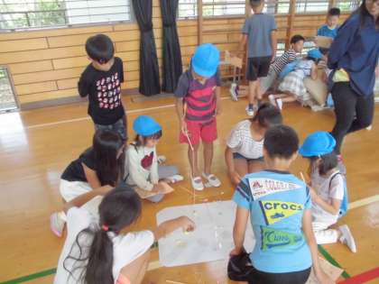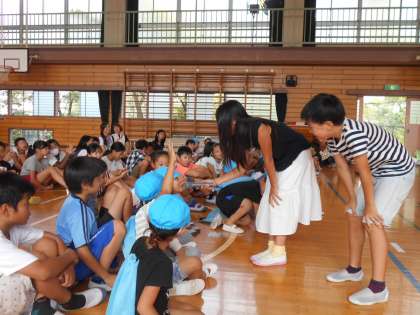 年間3回の交流のうちの1回目で、今回は5年生が準備したお店を保育園の子供たちに楽しんでもらいました。