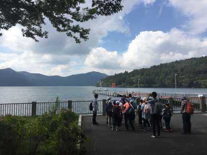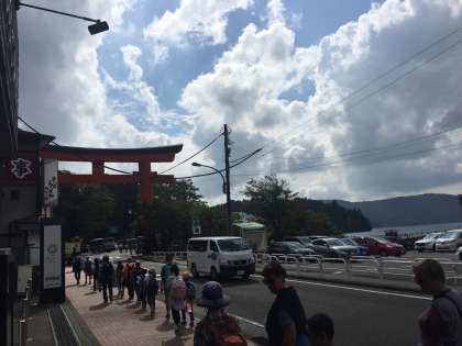 頑張って歩いたので、少し早く芦ノ湖に着きました。これからお楽しみのおやつタイム!