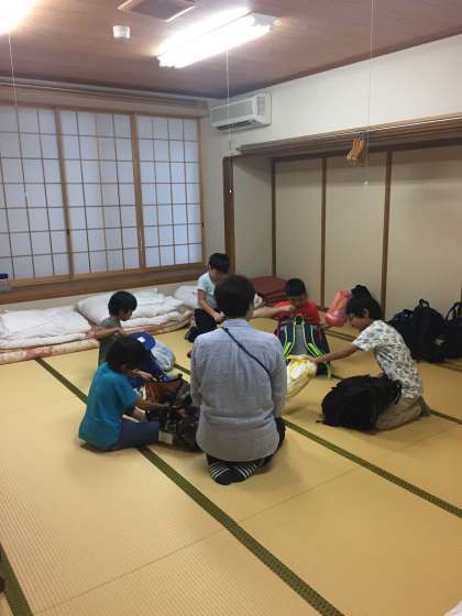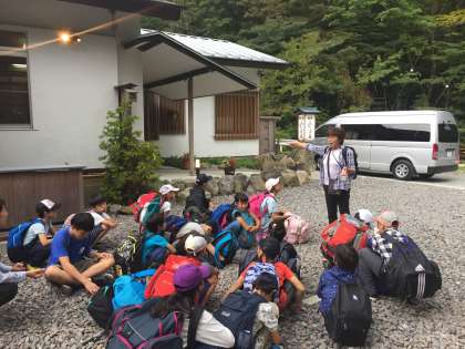 3時15分、お世話になる「ふたば荘」さんに到着。標高は約700mですから八王子より少し涼しいです。荷物の整理をしてから、小休止の後、バスレクの続きをします。