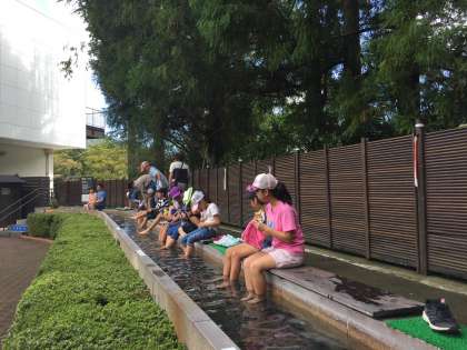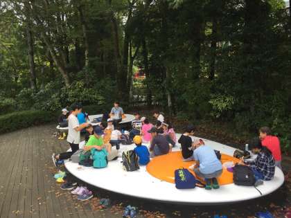 足湯の後は、目玉焼きのベンチでお弁当をいただきます。