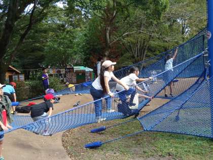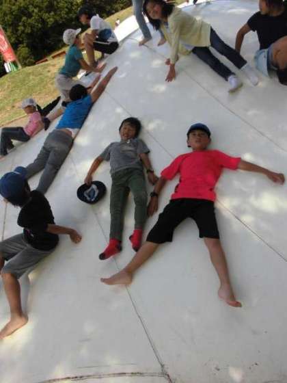 途中、噴水やネット、トランポリンなど遊びながらゴールに向かいました。