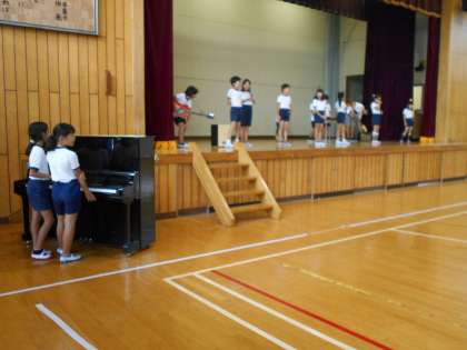 本日、南大沢文化会館で開催される上柚木音楽フェスティバルに、4年1組有志が参加します。本番は撮影できないので、体育館での公開リハーサルの様子をお知らせします。