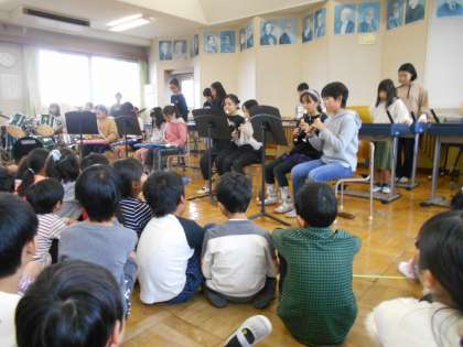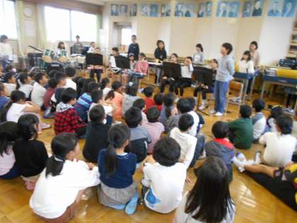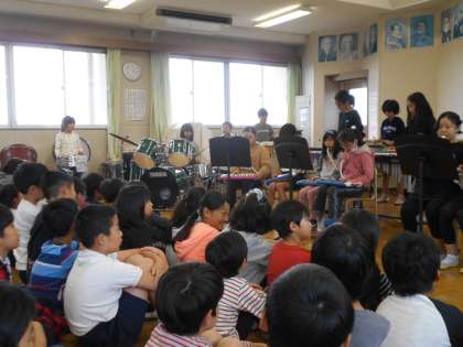 今年度から発足したバンドクラブ。今日は昼休みに「パプリカ」を発表しました。音楽室には、たくさんの人が聞きに来ていました。