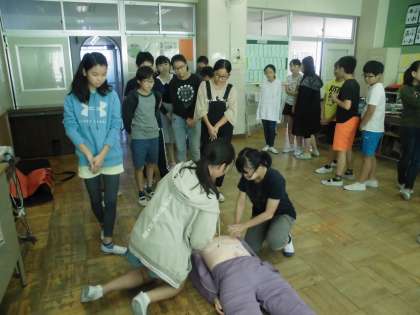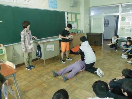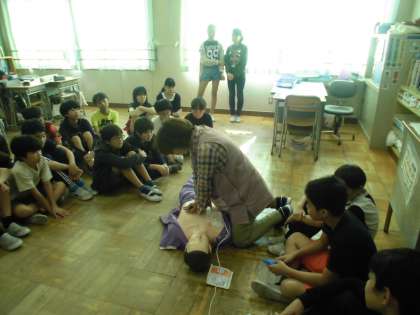 子供たちは初めての体験で緊張していましたが、リズムよく心臓マッサージの体験をしていました。