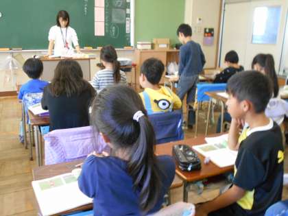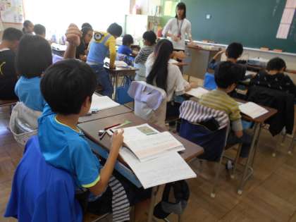 説明的文章「アップとルーズで伝える」を学習しています。「はじめ」「中」「おわり」の役割を確かめながら、筆者の述べ方の工夫を読み取っています。