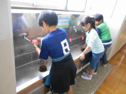 それぞれの分担場所で、いつも丁寧に掃除をしています。きれいになるまでしっかりと掃除をしています。