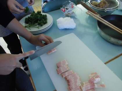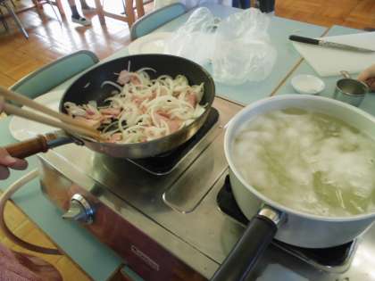 12月4日(水)に家庭科の調理実習で「ジャーマンポテト」を作りました。1、2校時6年2組、3,4校時6年1組で行いました。野菜を切って、ゆでたり、炒めたりと、安全に気を付けて楽しく調理することができました。また、みんなで協力して、片付けまでしっかりと取り組むことができました。