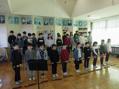 3年 ミニコンサート1 公開日 2020/03/02 更新日 2020/03/02 今日の出来事 3年生の皆さん、元気に過ごしていますか? 休みに入りましたが学習は順調ですか?今できることを一つずつ焦らず取り組めるといいですね。まずは、漢字と計算!がんばろう!静かな学校はとてもさみしいものです。 。。 金曜日、音楽でミニコンサートのリハーサルを行いました。みんなの真剣な表情がとても凛々しくかっこいいです。まずは、1組。 3年 授業 行事