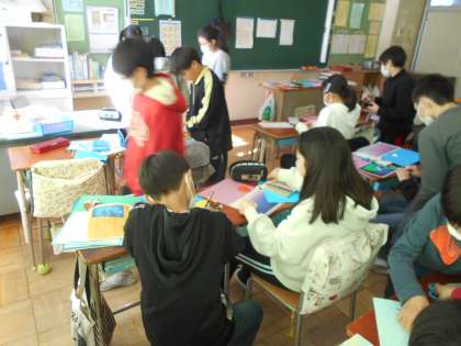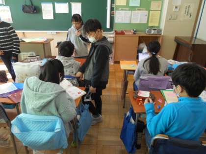 愛宕小学校で毎年行われている在校生へのプレゼント、カレンダーを作成していました。6年生の教室でのマスク着用率は高かったです。