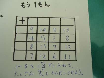 なれたところで、もう1もん。こんどは1〜8までのかずを1かいずつ入れてください。