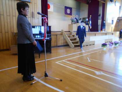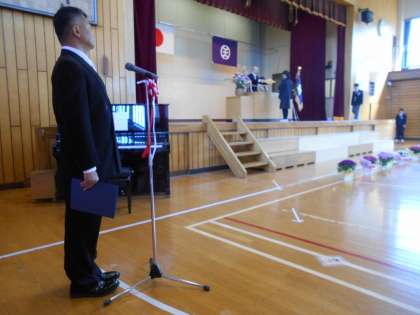 1組、とちのみ学級、2組の順で、卒業生全員が壇上で決意の言葉を述べた後、校長先生から卒業証書をいただきました。