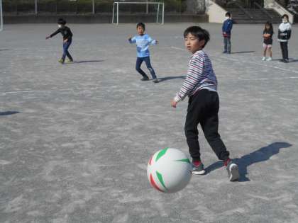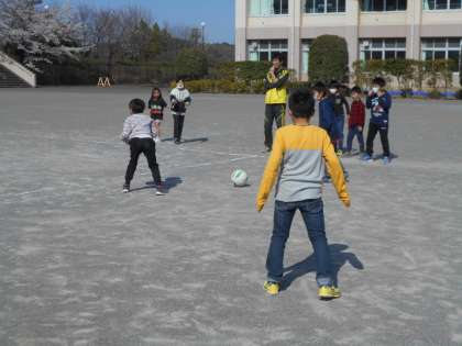 お休みの連絡があった児童以外は元気に集まりました。学期の終わりにできなかったお楽しみ会の代わりに、ドッジボールで遊んでいました。