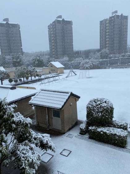 春の大雪 公開日 2020/03/29 更新日 2020/03/29 今日の出来事 ? 小池都知事こら不要不急の外出はお控えくださいとのメッセージが出された日曜日。季節外れの雪景色になりました。 校長より 授業 研究・研修 生活 行事 給食