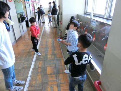 登校日には、ランドセルのしまい方やトイレ・流しの使い方、手の洗い方、連絡袋の使い方などを勉強しました。初めてのことにも、一生懸命挑戦している姿がすてきでした。