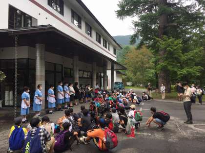 日光移動教室1日目 公開日 2020/08/03 更新日 2020/08/03 今日の出来事 宿舎の方々のお迎えを受けて、開校式です。空気がひんやりして涼しいです。雨は上がっています。 校長より 授業 研究・研修 生活 行事 給食