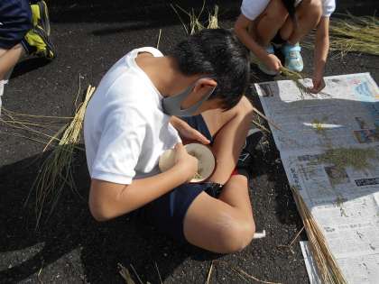 5年 バケツ稲 「脱穀」 「籾摺り」 その2