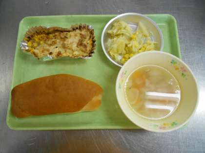 10月21日の給食 公開日 2020/10/22 更新日 2020/10/22 給食室から 今日の献立は、ミルクパン、パテシノア、ピースープ、メープルサラダ、牛乳でした。 今日はカナダの料理でした。メープルサラダにはメープルシロップが入って、カナダ風でした。